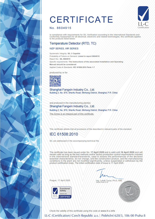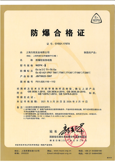 熱電阻本安防爆證書